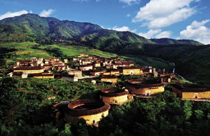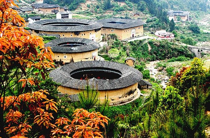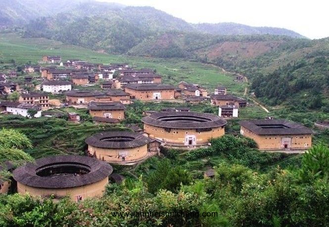 初溪村徐氏三世祖建于明永樂十七年(公元一四一九年),距今五百八十余年,為永定現存圓樓中年代久遠又結構特殊的一座。一般圓樓,小的設置兩處公共樓梯,大的設置四處樓梯,底層相通且層層環廊通達,相互往來,版權所有山東聊城聊之旅國際旅行社有限公司,轉載必究!十分方便。唯獨此樓,按底層每戶從一樓到四樓各自安裝樓梯,各層通道用木板隔開,七十二道樓梯把全樓分割成七十二個獨立的單元。房間、樓梯、隔墻全用杉木材料構建,全靠鄰隼頭銜接,不用一枚鐵釘,竟也穿越了近六個世紀的風霜雨雪,與厚達二米的生土墻一起依然挺立。初溪土樓群形成于13世紀初,同樣依山而建,土樓與層層梯田構成壯麗景觀,氣勢磅礴恢宏。初溪原名粗溪,意即粗溪,有著粗心大意的含義,由于寓意不好,所以改名--初溪。集慶樓堪稱初溪土樓群的代表,由經營紙業的徐姓人所建,建筑規模比周遭的要大得多。土樓以隔板分隔成72個單位,與上述的土樓設計不同。與別處土樓不同的是,樓內沒有水井,只能從樓旁的河邊打水,而且僅得一道大門,與其他土樓有3至4道大門不同。從對面山頭的觀光亭能一覽依山而建的初溪土樓群,土樓或大或小,或方或圓,一覽無遺,景象叫人陶醉。 在此后數百年間陸續夯造的土樓,所有的樓層都是環環相通的。集慶樓這種聚族而居又彼此獨立的模式,在動蕩年代里,既消除單門獨戶的恐懼心理,又避免了一般土樓沒有私密空間過度嘈雜的缺點,實在是兩全其美的創造性設計。集慶樓的房間、樓梯、隔門全用杉木構建,相鄰處全靠隼頭銜接,不用一枚鐵釘,在穿越將近600年的風霜雨雪后,依然與厚達兩米的生土墻一起巍然屹立,顯得古老而不破敗。