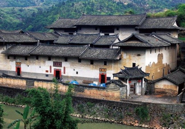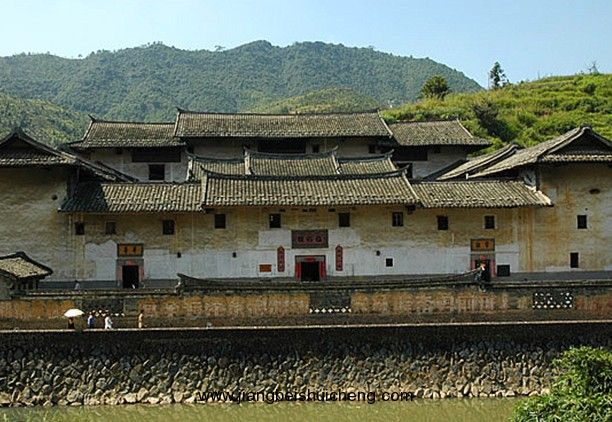 后樓9開間,被分隔成3個單元,每單元3開間,各設一道樓梯上下,樓梯位于面積較大的中間一間。每層的樓梯前向為廳堂,后向分隔為2個小房間。二層以上的結構與底層的結構相同,最頂上的半層則為閣樓。版權所有山東聊城聊之旅國際旅行社有限公司,轉載必究!后樓前面左右兩邊各有一口水井。舊時樓里的族長居住在后樓,以示尊貴。與前后樓連接的兩側橫樓高2層,磚木結構,兩樓對稱,內通廊式,穿斗、抬梁混合式木構架。橫樓外側各有一排磚木結構的平房,兩邊對稱,與橫樓平行,分設廁所、豬圈、雜物間、磨房、隹間等。該樓前堂(樓)、中堂(樓)為斷檐懸山頂,后堂(樓)為斷檐歇山頂,飛檐翹角。前、中、后堂(樓)屋頂作3段迭落,由前往后層層升高,屋頂坡度比其他種類的土樓的屋頂坡度要大得多,更顯得氣宇軒昂。
