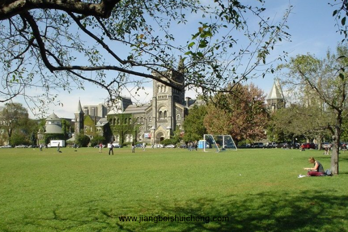 圣喬治校區(qū),她位于多倫多市市中心,一踏進校園,你立即就會被一座古老而生機潑潑的大學氣派所吞沒。整個校園氣氛和諧、雅靜、使人心礦神怡。古老的的維多利亞建筑和現(xiàn)代化的鋼筋混疑土大樓鱗次櫛比,交相掩映。雕塑棋布,林蔭夾道,花壇遍地,綠茵如毯。校園中心很少有車輛轔轔嘈雜和市塵喧嚷鬧囂,使人忘記了自己是置身于世界上最活躍的大都市之一。