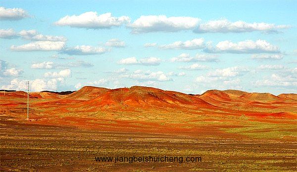 將軍戈壁上一處紅色丘陵區(qū),由數(shù)百個大小不等的紅色山包組成,總面積大約10平方公里。山體的高度多在20—30米之間,頂部呈平滑圓弧狀,周圍坡度平緩,山包之的洼地也是一片火紅。這些紅色丘陵綿延起伏,形成非常壯觀的地文景觀。火燒山的山體由磚紅色和桔黃色的巖石構(gòu)成,色彩艷麗,石質(zhì)堅硬,為侏羅系地質(zhì)構(gòu)造。版權(quán)所有,山東聊城聊之旅國際旅行有限公司轉(zhuǎn)載必究!陽光下的火燒山真像一片火海,那些起伏的紅色山頭就像升騰的火焰,你的第一感覺就是仿佛來到了西游記里的火焰山。火燒山的巖石原為泥巖,由于地下的煤層自燃,讓其燒烤成現(xiàn)在的模樣,因而地質(zhì)表面到處散落著被熔變的巖石。這些巖石不但質(zhì)地堅硬,而且色彩鮮艷,形狀奇特,具有一定的觀賞價值。由于火燒山油田的開發(fā),火燒山逐漸被人們所熟知,慕名而來的游客日漸增多,火燒山將成為重要的旅游勝地。