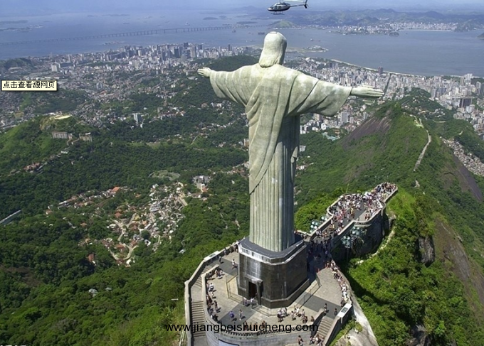 里約熱內盧基督像 救世基督像(葡萄牙語:Cristo Redentor)是一座裝飾藝術風格的大型耶穌基督雕像,位于巴西的里約熱內盧,是該市的標志,也是世界最聞名的紀念雕塑之一,2007年入選耶穌像耶穌像位于巴西里約熱內盧市的科科瓦多山頂已超過75年,重一千一百四十五公噸,高三十八公尺,張開的雙手寬28公尺,由波蘭裔法國藝術家朗多夫斯基(PaulLandovsky)所設計,他一九二六到一九三一年間先在法國造好雕像片段,然后運到巴西組裝,整體采用水泥材質,歷時四年建成,也堪稱是巴西最有名的地標之一,在里約市區里幾乎各個角度都可以看見它!耶穌像位于巴西里約熱內盧市的科科瓦多山頂,基座同時也是一座能夠容納150人的天主教堂。