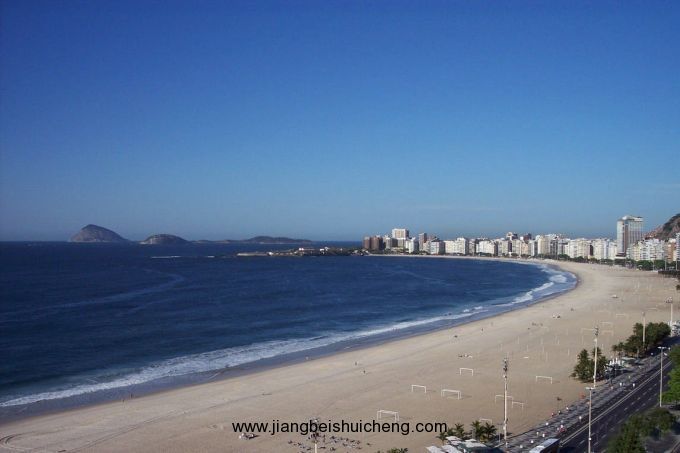 里約山秀,也美。走下山,除了市中心巨大的淡水湖外,海邊大大小小的沙灘一個接連一個,它們像是掛在里約“頸脖”上的一串晶瑩奪目的項鏈,散發著誘人的魅力。最著名的是“科帕卡巴納”海灘,這個新月形的海灘寬百余米。
