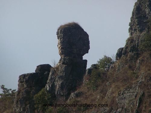 “東南小飛來”從對面的位置望去,為一天然大佛頭像,占稱大日如來,今仙姑娘娘頭佛,頭佛呈吉祥狀,兩側對稱而生二位侍女,高達16米,坐西朝東,望那天心。頭像面部表情比例十分協調,彷佛在念《心經》,真可謂天成勝人工。