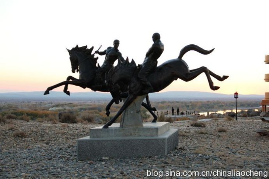 看此石雕,雕刻的真逼真啊,看兩匹馬奔馳的樣子,一定是在進行騎馬比賽吧
