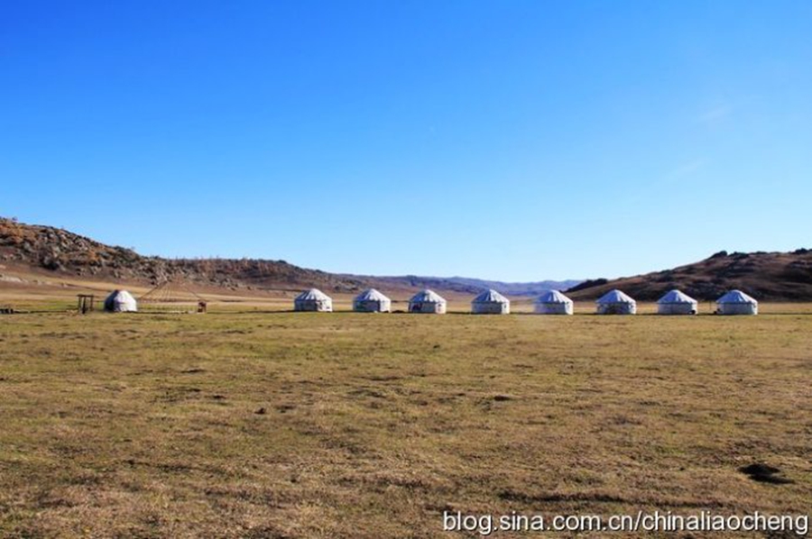 遠遠望去幾個蒙古包式的房子屹立在那里,住在里面一定會很舒服吧