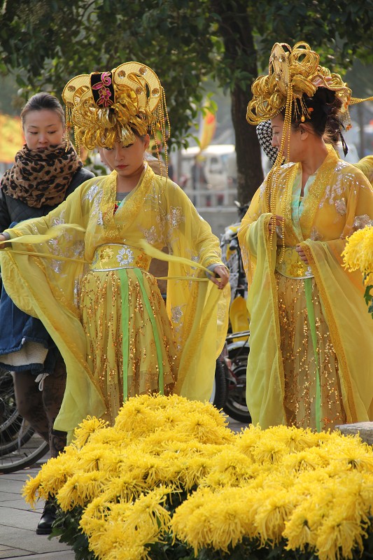 聽導游姐姐講,到秋季花開之際,漫步開封這座古城,無論你走到哪里,都可以看到鮮艷奪目的菊花,聞到沁人肺腑的花香。開封的菊花目前有數千種。開封種植菊花的記載可以追溯到1600多年前的南北朝。北宋時期,開封菊花就已經馳名全國。到了明清時代,開封養菊之風更盛,清朝乾隆皇帝來開封賞菊時親賦詩詞,留下“楓葉梧青落,霜花菊白堆”的美句,在開封禹王臺,至今還留有詠菊詩碑。一會兒要一睹風采……
