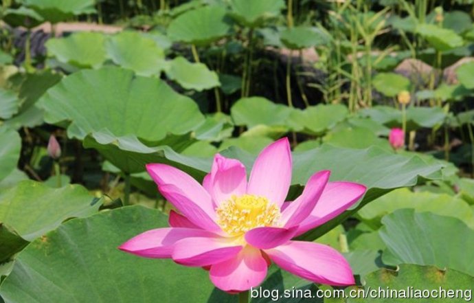 一只美麗的荷花屹立在無數(shù)的碧綠荷葉中,真是“萬綠叢中一點(diǎn)紅”啊