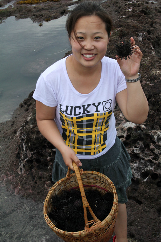 哈哈,看我撿了這么多海膽,想不想來(lái)一個(gè)