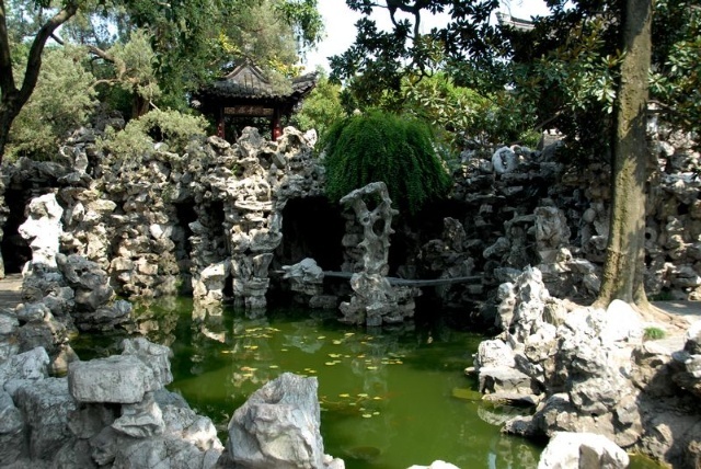 個園假山,一部分用黃山石疊成,山腹中有曲折磴道,盤旋到頂,這是北派的石法;一部分用太湖石疊成,流泉倒影,逶迤一角,是南派的石法。這兩種疊石的方法,意味著山水畫的南北之宗,統一在一個園子里,構成個園假山的獨特風格。個園“四季假山”為國內唯一孤例。