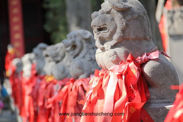 穿過儀門,你將看到一條我國關廟中惟一的石獅甬道。在長約35米的古甬道上,共有大小石獅104尊安坐兩側甬柱頂上,大獅姿態(tài)安詳,小獅活潑可愛,百獅百態(tài),讓人稱奇。
