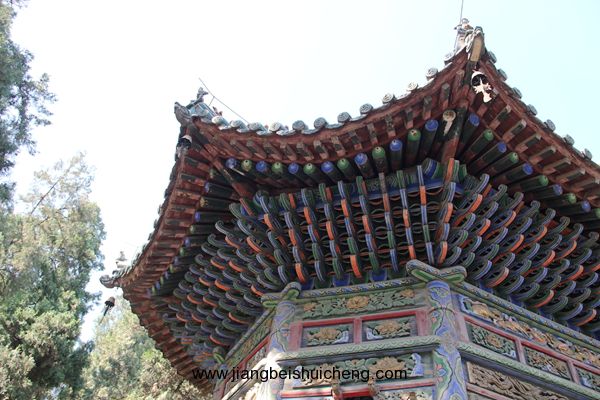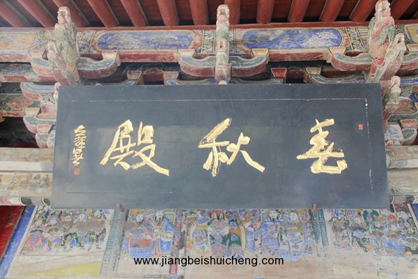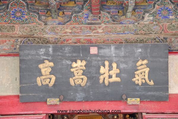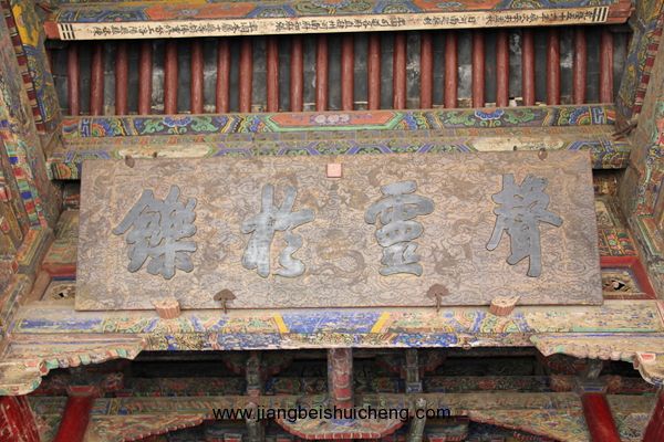 仰面觀之,有一塊大匾高高懸在大門上,上書“聲靈于鑠”四個大字,寓意關公美好的聲名象美好的音樂一樣傳揚四方。這塊匾是清乾隆十五年乾隆帝所題,同時兩側并題有聯(lián)曰:“翊漢表神功龍門并峻,扶綱伸浩氣伊水同流。”由此可以看出,不僅百姓敬仰關公,古代帝王對關公也同樣尊崇。
