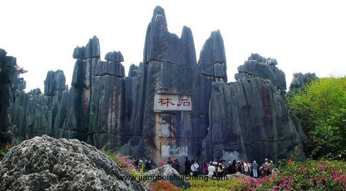 一天之計在于晨,黎明悄然而至,我們又開始活躍起來。吃過早飯,坐上大巴,一路歡歌笑語,直抵石林。“石林是一座名副其實的由巖石組成的‘森林’,景觀資源十分豐富,不但具有世界喀斯特地貌的典型性、代表性和唯一性,還具有很高的美學、生態、科研、科普價值,被譽為‘造型地貌天然博物館’、‘天下第一奇觀’。。。”導游甜美的聲音不斷在耳邊游蕩,可是當栩栩如生的士兵俑、詩人行吟、母子偕游等無數象生石一一闖進我眼簾后,我就再也聽不見任何聲響了。這是怎樣的驚心動魄,大石林“劍鋒池”里觀“秘林”,曲折迂回后,小石林的“阿詩瑪”又散發出五彩斑斕的光,攝人心魂;還有一處“鐘石”,竟能敲出許多種不同的音調。這是大自然的鬼斧神工,深、幽、險、奇,給人類的饋贈。