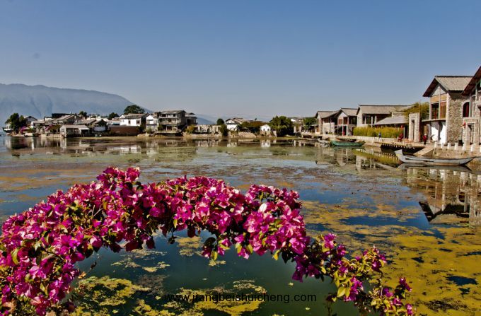 雙廊自古就是名人學者滯留的地方,古有楊升庵、李元陽,今有舞導家楊麗萍、作家蘇童、畫家趙青等。或許雙廊就是一處圣地,躋身于此,我感受到從未有過的平靜與安逸,仿佛自己真的就遠離了塵世,找到了夢幻中的祥和。而玉璣島也給了我同樣的感覺,風光秀麗的玉璣島、與南面的金梭島南北相對,二島猶如浮在水面的一對鴛鴦,再加上,拍打礁石的陣陣海浪聲,真真是應了一句話,置身于此,只羨鴛鴦不羨仙。島上人家民風淳樸,我們路過一戶人家,好客的白族主人熱情地邀請我們進去坐坐,閑話家常,一瞬間,我錯覺到,我不是在旅游,卻像是回到了家一般,如此溫馨。