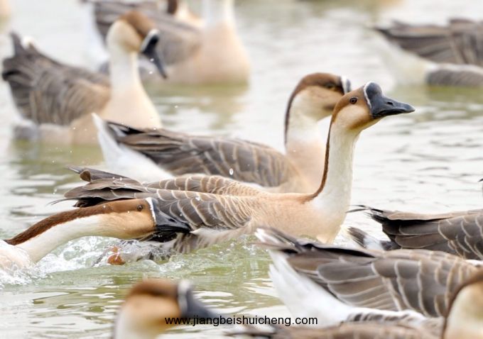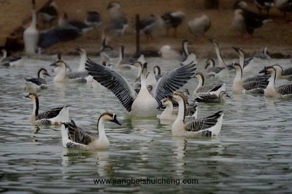 您看放飛島內羽毛為灰色,嘴巴為黑灰色,腳和趾為橙色的是灰天鵝,它還有一個美麗的名字叫鴻雁,這是目前景區內數量最多的候鳥;野生灰天鵝是國家二級保護動物。