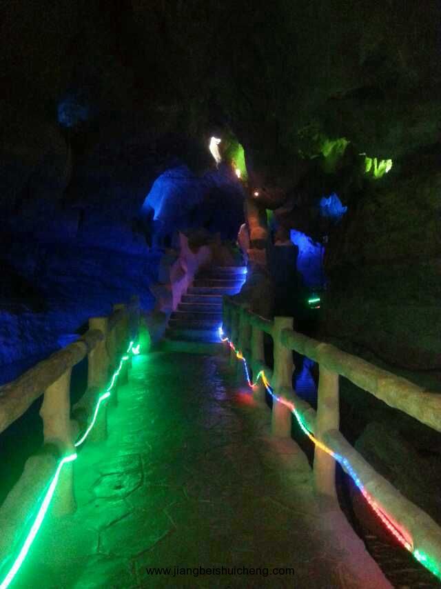 第二天游覽地下大峽谷,地下大峽谷最出名的游玩項(xiàng)目當(dāng)屬地下漂流。地下河漂流項(xiàng)目經(jīng)過(guò)改造,漂流長(zhǎng)度由原來(lái)的723米延長(zhǎng)到1000米。該項(xiàng)目已經(jīng)得到上海大世界吉尼斯記錄總部的認(rèn)證,被譽(yù)為中國(guó)最長(zhǎng)的溶洞漂流項(xiàng)目[。漂流道的改造設(shè)計(jì)充分體現(xiàn)了溶洞內(nèi)的幽深莫測(cè),起伏高下,波激浪涌,抑揚(yáng)頓挫的特點(diǎn)和恐龍模型的陣陣吼聲,將地下河漂流的原生野始,驚險(xiǎn)刺激演繹的淋漓盡致。