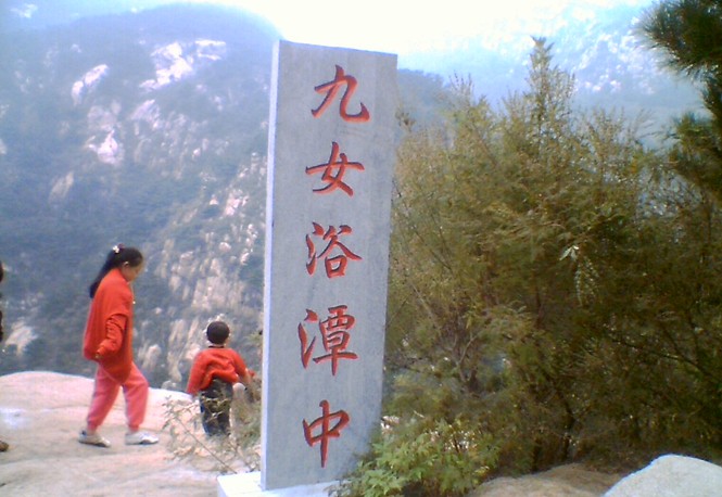繼續北行,遠遠看到一座潔白的大理石建筑,走近方知是三層巨大巖坡,高約50米,上有三潭,名曰“九女潭”。傳說因玉皇大帝的九個女兒在此沐浴而得名。細品察確有一種仙風道氣之感。此處山高且秀,水闊而柔,野花含媚微笑,青松有意招手,小鳥歡快歌唱,蝴蝶叢間漫舞,上下三個潭中,最令人稱奇的是二潭,瀑布從崖壁緩緩流下,似落銀散珠,艷陽照射流光溢彩。二潭石邦石底,光滑似玉,白膩如脂,是天然大浴盆。流水從一石槽中瀉入三潭,此處即是天女浴后休息的云床。在潔白的大理石般“云床”上,留有她們所坐、所臥、所仰的痕跡。美潭圣景猶未忘,版權所有山東聊城聊之旅國際旅行社有限公司,轉載必究!眼前景物又勾魂。只見前面兩山相對,石門洞開,寬約六七米,巧奪天工,是九龍大峽的最窄處。水流沖門而瀉,跌入深潭,潭水墨綠,深不見底,時有魚兒跳躍戲嬉,大概在練“跳龍門”的絕招吧?