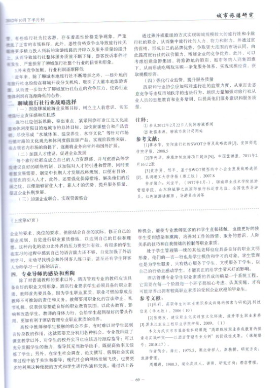 家級期刊《旅游縱覽》發表劉寶平文章《聊城市旅行社行業發展SWOT分析》