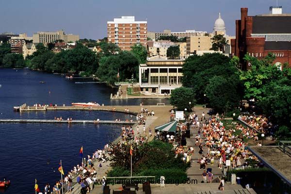 至于威斯康辛麥迪遜校區(qū)的校園環(huán)境,更是一等一的好。在鄰近威斯康辛州首都的市中心,有一個相當(dāng)有名的曼多塔湖(Lake Mendota),而靠著這個湖畔一千英畝的地方,就是美國最杰出的大學(xué)校園─威斯康辛大學(xué)麥迪遜校區(qū)。每年威大都會在曼多塔湖舉辦各項運動競賽,也有不少學(xué)生在湖畔進行社團活動或是小團體的聚會,但大多數(shù)都是大學(xué)部的學(xué)生。不過曼多塔湖的確是所有就讀威斯康辛大學(xué)麥迪遜校區(qū)的學(xué)生最美好的一個回憶,在入學(xué)時和畢業(yè)后,才能有心情好好的欣賞這片美景,也算是威大學(xué)生的幸福。