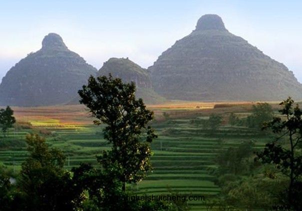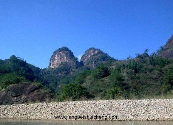 在七曲溪北,二峰并峙似并蒂的蓮花燦爛于云端,又名鼓子峰、雙乳峰。上有船棺遺址以及石鼓和石鼓道院遺址。版權所有山東聊城聊之旅國際旅行社有限公司,轉載必究!峰右斜插云端的是景區最高峰──三仰峰,海拔717.7米。