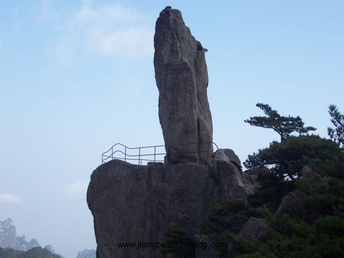 相傳,宋代有個叫單福的石匠,一生給人家造了不少橋,心想也在自己家鄉門口的江上建造一座,但嘆息沒有幫手。他膝下只有一女叫小姣,長得聰明美麗。她知道父親的心思.便要求參加幫助干。但那深山采石,百里運石的苦和累,小女子怎么受得了,所以單福就是不答應。小姣跪在地上苦苦哀求,單福沒奈何,才含淚點頭。他還把三個徒弟找來幫忙,不久就干起來了。由于開山運石的苦和累實在難受,大徒弟和二徒弟先后悄悄地溜了。單福和女兒、三徒弟為修橋鐵了心,繼續風里雨里苦干著。版權所有,山東聊城聊之旅國際旅行有限公司轉載必究!但好幾年過去了,運到江邊的石頭只有一小堆.這樣累死苦死,橋也建不起來。小姣一咬牙,請人寫了“捐身修橋”四個大字,插了個草標,坐到江邊石堆旁。一連三天,來看的人無數,但望望滔滔的江水,就都走了。這天,忽然來了個瘸子。身背一把扇子,摘了草標.問小姣愿不愿意跟他走,小姣回答說:“什么時候把大山里開采的石頭全運到江邊,就什么時候踉你走。”這瘸子原來是八仙中的鐵拐李。他擠出人群,騰云駕霧,很快來到百里外的大山,從背上拿下扇子,對著單福和三徒弟開出的石頭就扇。石頭竟都飛了起來,又紛紛都落在江邊。單福和三徒弟也被從山上扇到了造橋工地。鐵拐李還怕不夠,又對身下立著的一塊巨石扇了三扇子,他就站在那巨石上飛到了江邊。只見底下盡是人,未敢讓巨石落下。又聽單福大聲說:“石頭夠了”。他便駕起云頭,飄游起來,游到黃山,見黃山風景秀麗,便將石頭落下。從此,這飛來石就給黃山增添了絕妙的一景。另外還有兩處飛來石,一在翠微峰側,一在古穎林庵前小峰上。
