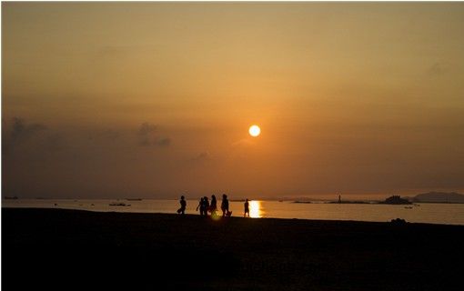 海邊日出或日落之時景色最美,但此時光線最弱,通常若彩霞的層次表現好了,人物則會變得漆黑一片。因此,要想讓人物與彩霞兩者皆好,須用閃光燈作輔助光。具體的曝光值應該這樣定:先按照燈與人物之間的距離來確定光圈數,然后在根據彩霞的具體亮度來定下與光圈相適應的快門速度。