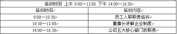 培訓(xùn)時(shí)間一天,內(nèi)容包括:辦公室、財(cái)務(wù)、網(wǎng)絡(luò)、客服、業(yè)務(wù)(計(jì)調(diào)、前臺、導(dǎo)游)培訓(xùn),企業(yè)制度培訓(xùn)等。上午是《聊之旅員工入職職責(zé)》的培訓(xùn),從員工試用期開始到正式簽訂工作協(xié)議,對職業(yè)準(zhǔn)則以及員工行為準(zhǔn)則都進(jìn)行了詳細(xì)地說明,員工所關(guān)心的的薪酬問題、績效問題也在文件中提及。