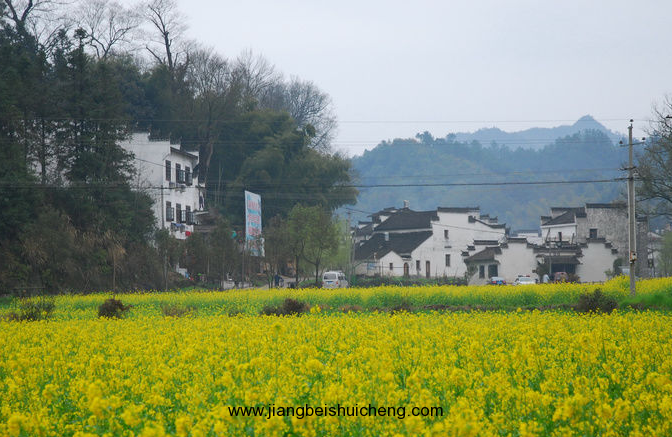 江西婺源的油菜花就是這樣一種意韻。江西婺源被譽為"中國最美的鄉村",婺源最美的季節是油菜花開放的時候。余邵詩云:“油菜花開滿地黃,叢間蝶舞蜜蜂忙;清風吹拂金波涌,飄溢醉人濃郁香”。油菜花成為吸引觀光的最佳綠色資源,花粉中含有豐富的花蜜,常引來彩蝶與蜜蜂飛舞于花間,由此平添了鄉間田園繽紛的景致。三月中下旬,棵棵粉紅的桃花、潔白的梨花點綴在漫山遍野金黃色的油菜花中,掩映著白墻灰瓦的徽派建筑,使得每一個逃離紛繁城市的人都能找到歸宿。