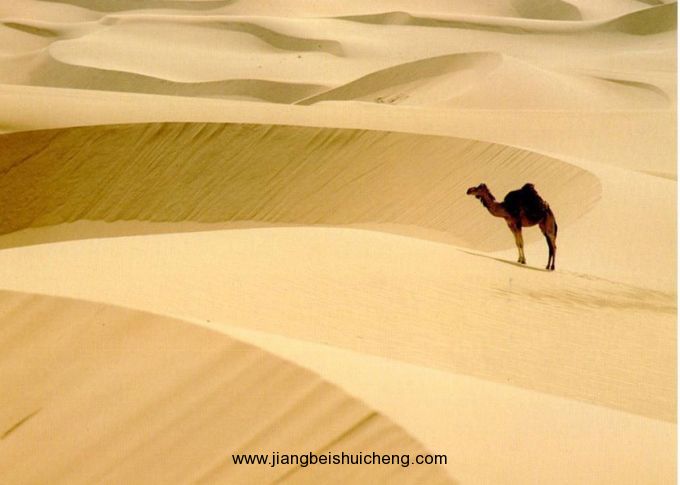 一只駱駝在沙漠里跋涉著。正午的太陽像一個大火球曬得它又餓又渴,焦躁萬分,一肚子火不知道該往哪兒發(fā)才好。