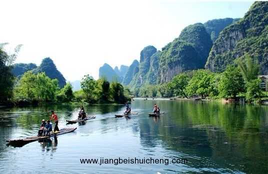 竹筏擱淺,靠岸,我真想光著小腳丫,把腳泡在這半江的柔情中,真正地印證一下陶淵明先生的“寄情山水”!只是,水太涼了,盛夏吧,這是我對陽朔江水美麗的邀約。這是一次對青山綠水倉促的追夢,夢未圓,卻無憾,陽朔的山水一路走過,滿載芬芳。游客稀少處,桂林陽朔的山水是一片凈土,讓你做到身的輕松,心的空靈!