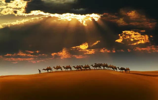 絲綢之路上的駝隊和主人也是經驗豐富的模特,他們能在沙漠中找到最適合拍攝的水洼、沙坡,和最佳的日落時間,調度和隊形也不需要攝影師操太多的心。
