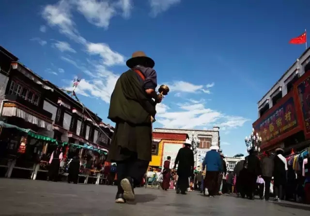 八廊街被藏族人稱為圣路,因此有許多磕長頭的佛教信徒活躍于此,許多信徒也愿意成為攝影師們的擺拍模特。