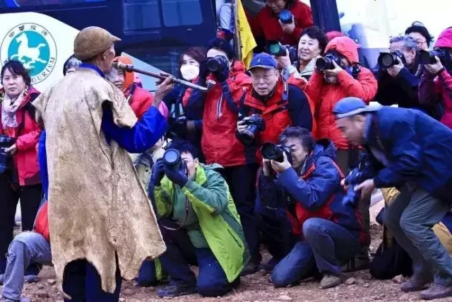看到主人公的到來,攝影師們興奮異常。老王駕輕就熟地跟攝影師們交涉起來,向他們介紹大片拍攝最佳的時間和角度。