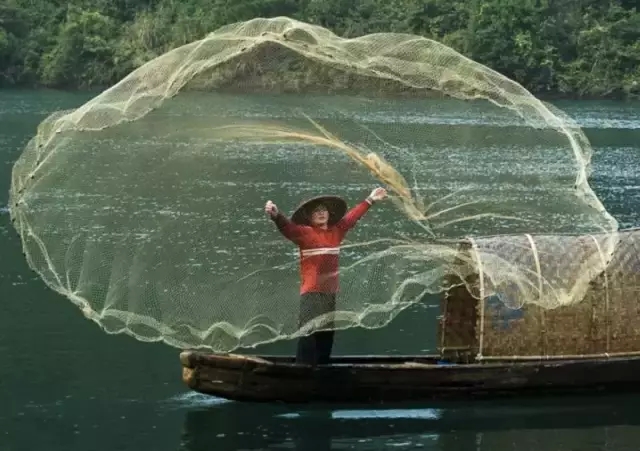 值得一提的是,捕魚大叔由于要劃船和撒網,不能很好的控制調度。和攝影師商榷之下,一項神奇而偉大的通訊工具被運用到中國攝影擺拍事業里——對講機。