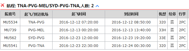 (請客人于2016年12月12日上午05:00在濟南機場內自行乘坐國內段航班前往上海浦東機場,請客人務必攜帶護照復印件、身份證原件和機票行程單自行辦理飛往上海的航班的登機手續。 因個人原因導致遲到不能辦理登機牌,責任自負。 去程聯運請務必乘坐,否則全程機票取消,后果請客人自負。 |