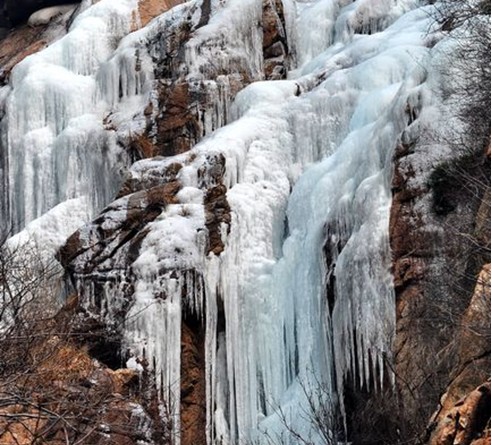 山東青島北九水冰瀑初長成活似銀河落九天