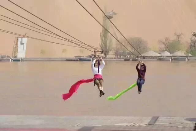 “飛黃騰達”滑索跨越黃河最長距離達到了955.7米,是目前最長的跨黃河索道。滑翔在黃河之上,不僅讓人驚呼過癮!
