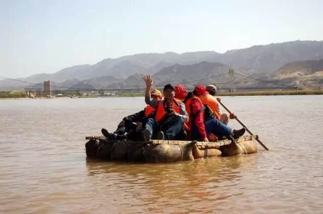 黃河上的非物質(zhì)文化遺產(chǎn)——羊皮筏子漂流。羊皮筏子也只在比較淺的水域行駛,因此坐筏子的感覺也少了些驚心動魄。坐在筏子上,低頭就能看見黃河水從羊皮胎的空當(dāng)中悠悠穿過,向下一伸手穿過木架子就能撩到?jīng)鰶龅暮铀婷畹氖欠ぷ与S著水波蕩漾晃晃悠悠,乘客卻不會被水打濕,有點“我自端坐,任他風(fēng)浪”的味道。