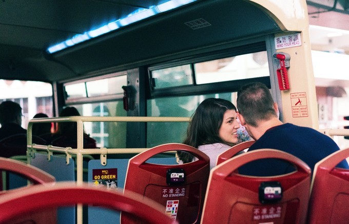 等了30分鐘的代價(jià)是,可以坐在big bus樓上第一排,遮風(fēng)擋雨還能偷拍。香港,隨處可見的異域風(fēng)情。