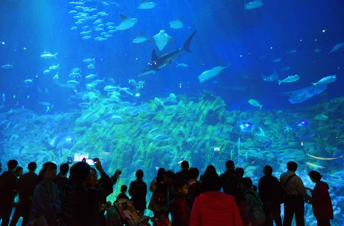水族館標(biāo)準(zhǔn)照來一張,幾乎全世界都一樣吧。缸里沒有巨無霸的大型魚類,但也足以滿足小朋友們的要求。一進(jìn)園就把山下的這個(gè)“海洋奇觀”水族館看了,而不是像很多攻略說的那樣直沖纜車。