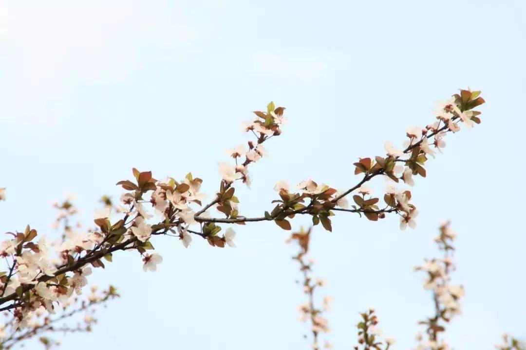 通過對角線構圖,延伸的花枝自然填充整個畫面,顯得充實飽滿而又不失活潑。如果拍攝時有蝴蝶、小蟲子等小生命作為點綴,就更富有生機了。