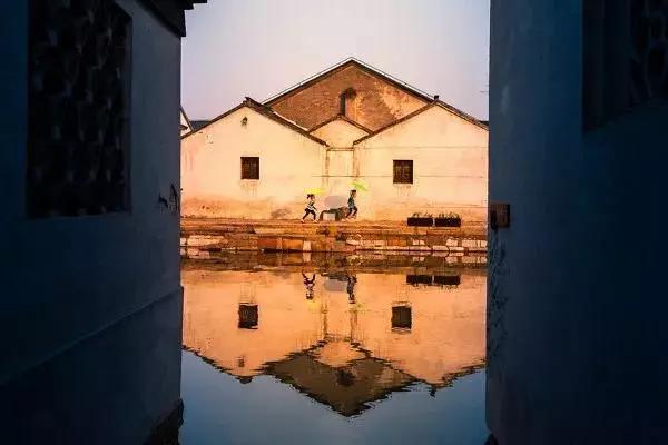 最常見的對稱構圖情況是利用水的鏡面反射作用,以水面作為對稱軸,被攝體與水中的倒影形成對稱。拍攝時要聯合中水平式構圖,將水面這一對稱軸放在取景框的中央,嘗試放大,裁減掉多余的干擾景物,真正凸顯被攝主體的對稱之美。