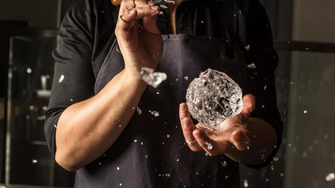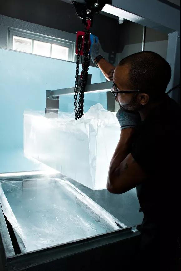 冰板制作好后,調酒師將對其進行人工切割,不斷地切成小塊,然后再將這些小塊一一鑿成需要的形狀。如果說一個高人氣(high-volume)酒吧只使用手工制作的冰塊,那么粗略計算一下,這個酒吧每晚都需要一個調酒師專門鑿冰,并且馬不停蹄地鑿一個半小時。London Cocktail Club bars在去年一共賣出大約14萬杯老式雞尾酒,如果使用手鑿冰塊,可想而知這背后所需的人力和時間多么龐大。