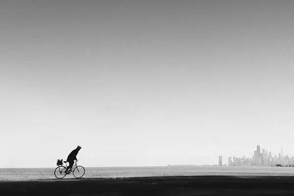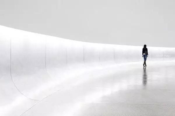 如果極簡主義作品還能夠說故事的話,必將會提升一個層次。例如,極簡風格的街頭攝影就是將“人”作為主要元素,因為即使人物所占畫面不多,也往往會成為照片的焦點,而人與背景的互動,會帶來豐富的故事性。注意背景的畫面,例如平行、引導線、弧形,都可以輔助主體,構成漂亮的作品。
