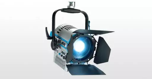 佛式聚光燈是影棚內使用最為廣泛的工具,有從50W—2000W眾多類型,有老式的厚重外殼的也有輕型鋁制的。HMI和鎢絲燈都可以設計成佛式聚光燈。