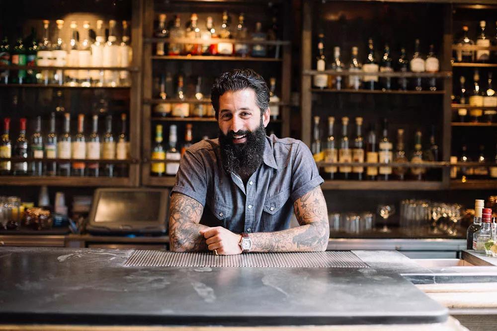大胡子、紋身、油頭,當代Vintage調(diào)酒文化下無數(shù)調(diào)酒師開始模仿的裝扮,照著這個方向去找,還真找到一位和杜爾馬茲老師一個模子刻出來的調(diào)酒大咖: