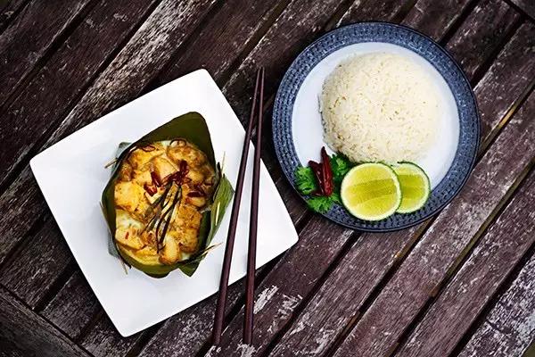 這道菜原本是古高棉人用來慶祝水節的美食,將肉類(魚、雞、豬、牛肉)裹在香蕉葉中烘烤,再加入椰汁、椰漿、高棉咖喱醬、檸檬葉和當地蔬菜,上桌以后不僅顏值高,椰香魚香葉香渾然一體,口感綿密有點像咖喱。