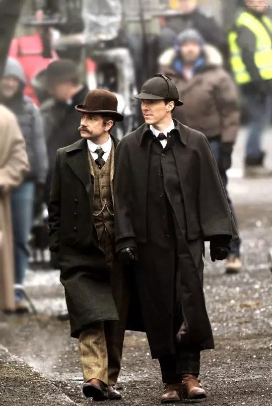 毫無疑問華生選擇了乖乖的伊頓領,非常的文藝小清新,適合他的賣萌氣質;反觀夏洛克選擇了百搭的溫莎領,且配以領結,不糾結。至于男神們都穿什么過寒冬?在北方冬季,西裝內一件薄薄的花呢馬甲,外面再加一件大衣,就足以抵擋所有嚴寒。
