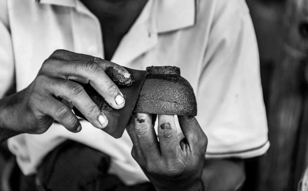 做好的胎體要進(jìn)行打磨,打磨工具為半手動,每一件都需要精心打磨