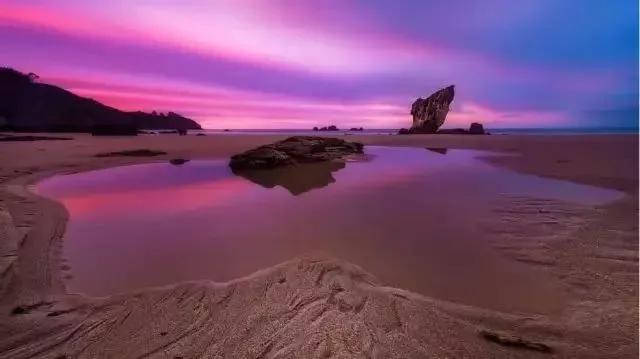 當我們去海邊拍照的時候,可以選擇在沙灘上,利用一些巖石、樹枝這些物體做前景,讓拉絲的效果更加明顯。
