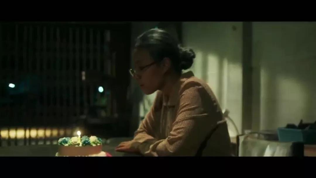 發完信息,母親一個人坐在桌前,陪著她的只有插好蠟燭的蛋糕。